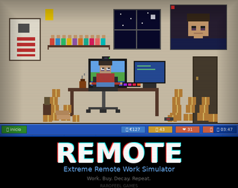 REMOTE is a satirical survival sim about the slow decay of working from home. Answer emails before the timer runs out. Spot bugs in production code. Survive meetings where nobody listens. Then spend your salary on Ramazon buying overpriced gadgets, subscription traps, and plastic figures that give you a brief dopamine hit before the existential dread returns.